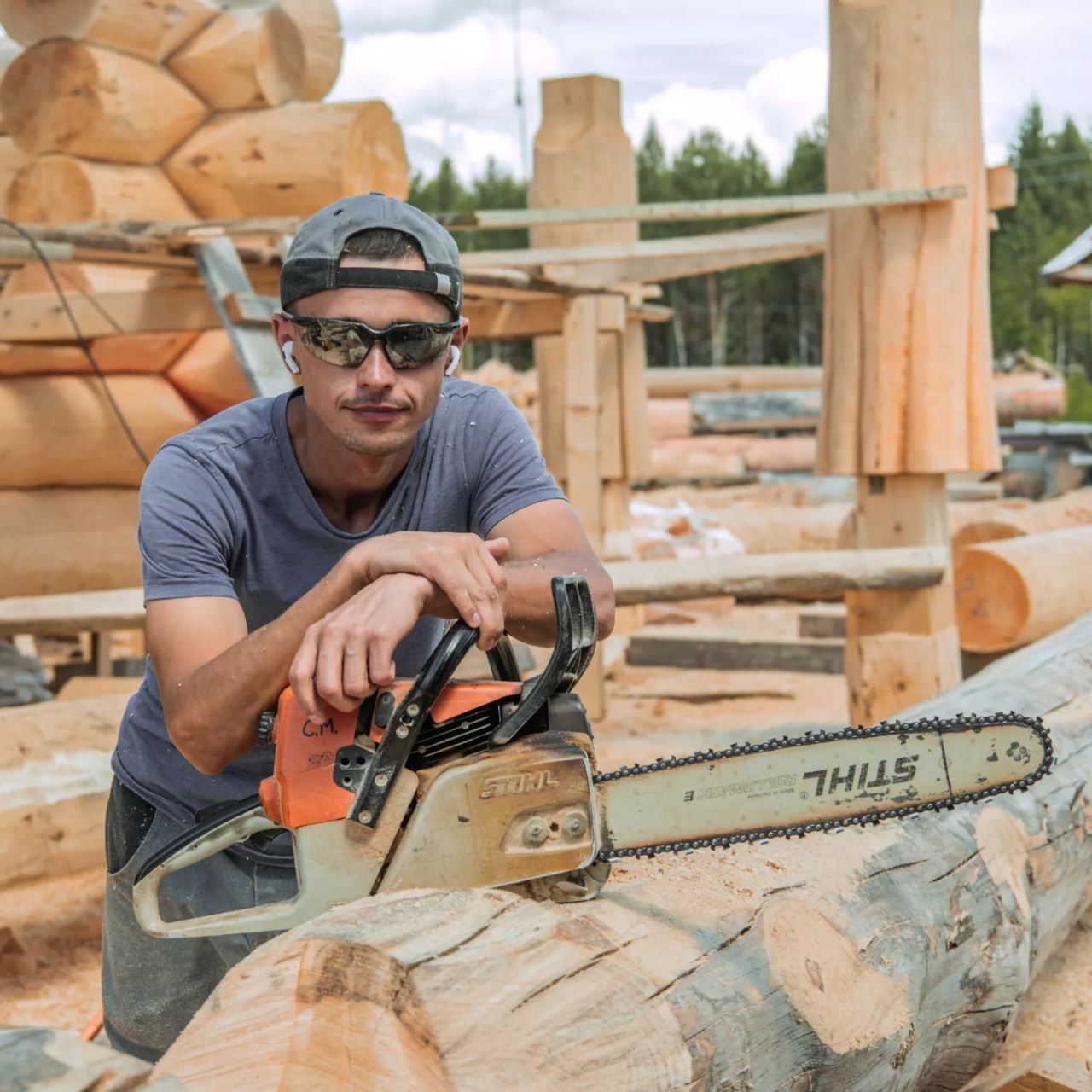 Профессиональный рубщик срубов
